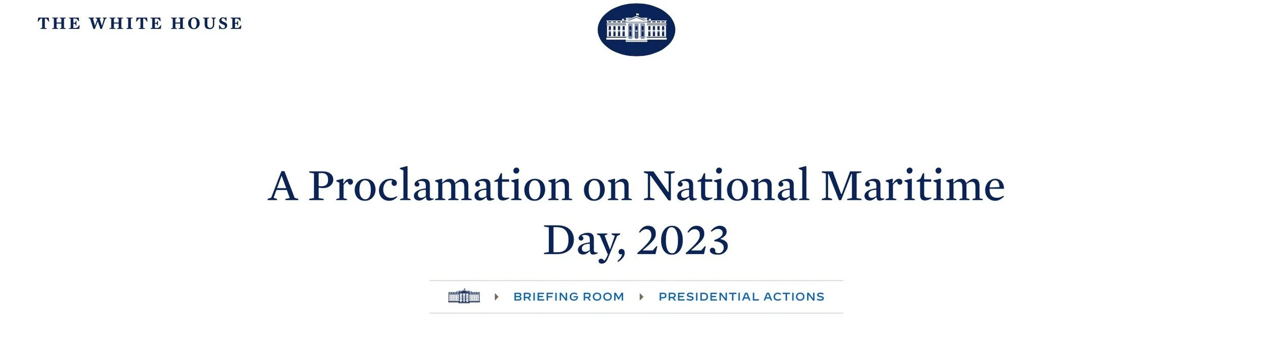 NOW, THEREFORE, I, JOSEPH R. BIDEN JR., President of the United States of America, do hereby proclaim May 22, 2023, as National Maritime Day. I call upon all Americans to observe this day and to celebrate the United States Merchant Marine and maritime industry with appropriate programs, ceremonies, and activities.